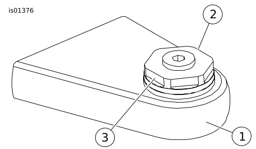 | 2. | See Figure 2. Place larger fork stem nut cover (4) over fork stem nut. Apply Loctite 243 (blue) to the remaining set screw (2). Tighten the set screw against the fork nut flat until cover is secure. |