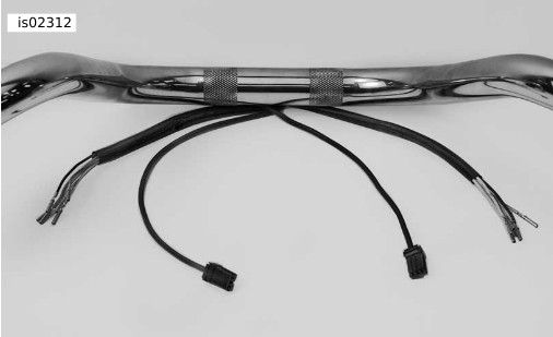 | 9. | Route wire harness cables along appropriate sides of handlebars to holes containing rubber grommets previously installed. | |||||||