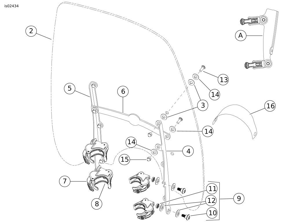 7 | ชุดประกอบแคลมป์, ปลดโดยไม่ใช้เครื่องมือ (4) (ประกอบด้วยรายการที่ 8 สองชุด) | 57400467 | ก | มุมมองด้านข้างของแคลมป์เมื่อประกอบเข้ากับโครงยึด | ||