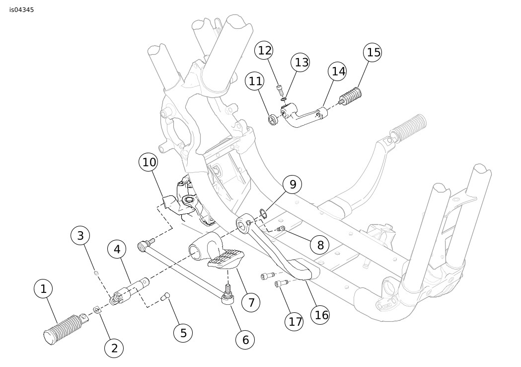 | 16 | Footrest/Brake Pedal Support Bracket |
