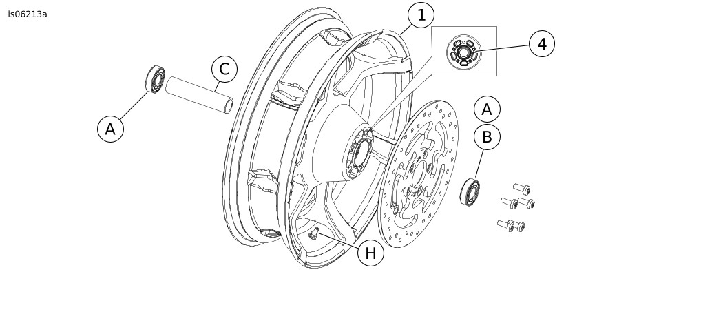 3. | Rakit komponen kit pemasangan roda, cakram rem dan sproket bawaan ke roda, menggunakan tabel komponen servis yang sesuai. Lihat manual servis. | |