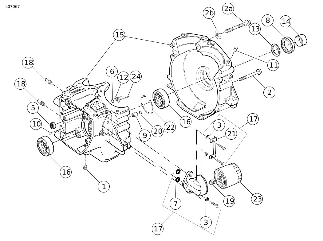 17 | Kit dudukan filter oli, dengan kit pelat kunci, adaptor, dan O-ring | 26261-99 |