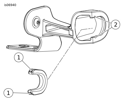 | 2. | See Figure 1. Install the new bushings. Make sure the sides of the bushing are gripping the sides of the bracket and that the two bushing bumps seat in the bracket pockets. You should hear an audible click when the bushing is seated. |