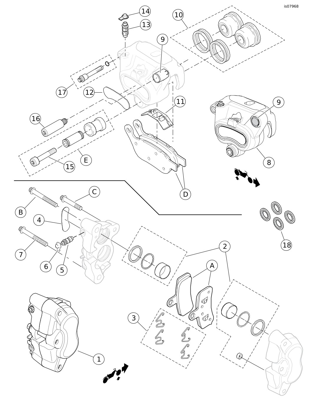 E | Remklauwpenset, achterrem (onderdeelnr. 44066-08A. Bevat item 15) | |