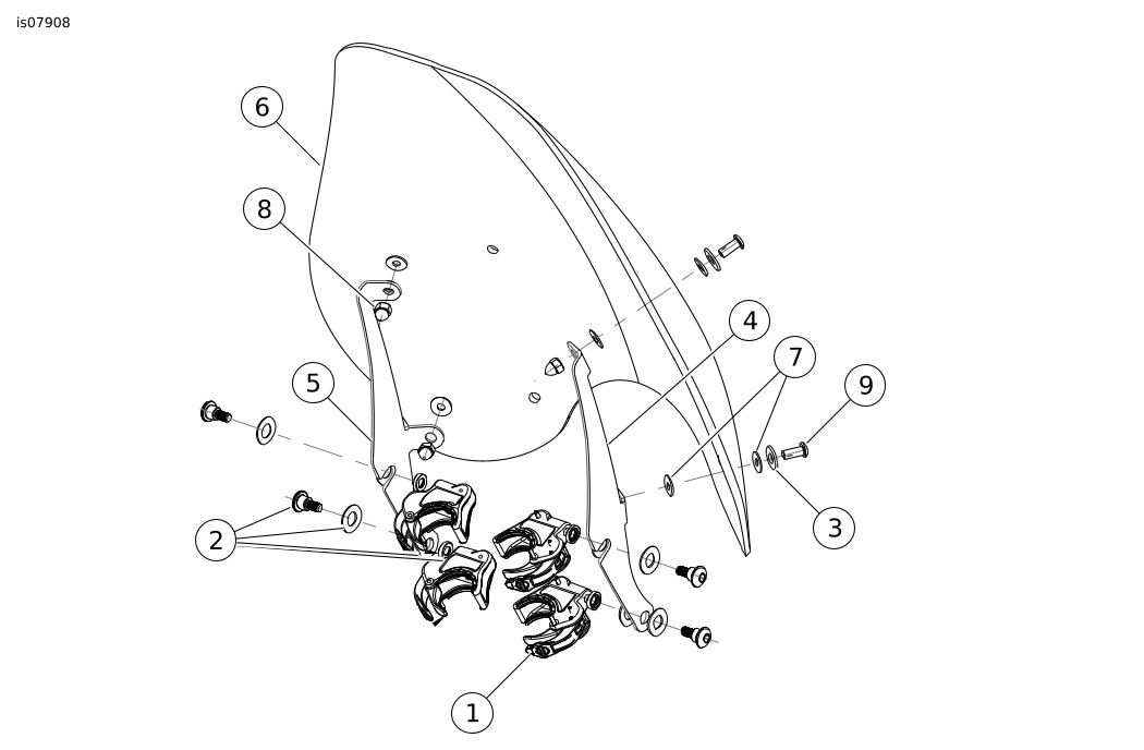 2 | Комплект, хардуер за монтаж на предно стъкло (4) | 58202-04 |