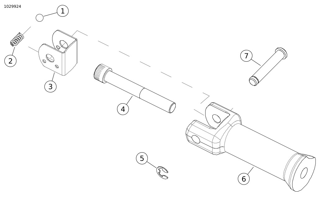 5. | הצב את מדרך המוט מול תמוכת מדרך המוט והתקן את פין הסגיר (7) ואת טבעת הפרסה (5). |