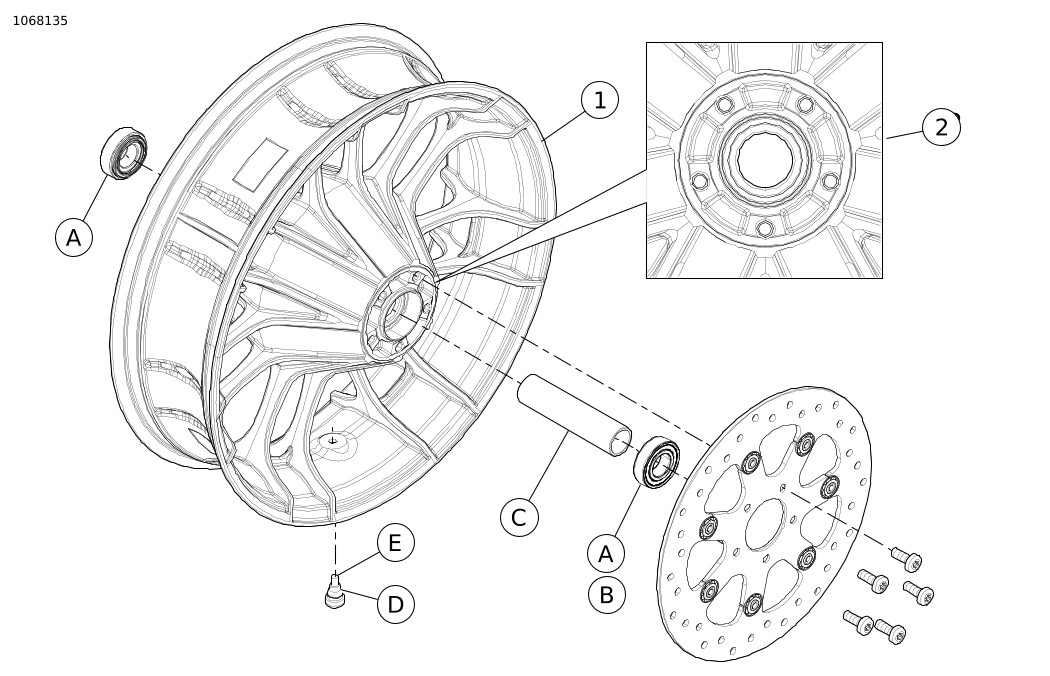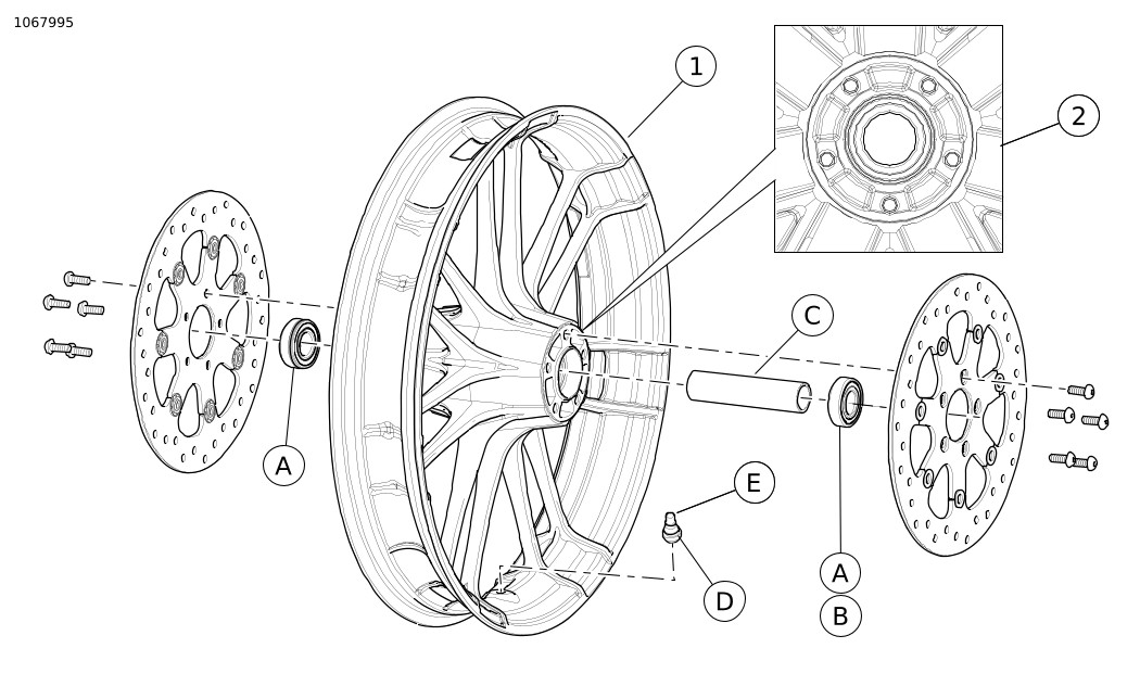 2. | הערה ראה איור 7 . החריצים החרותים בגלגל הקדמי מציינים את הצד של המסב הראשי בגלגל ויש להתקינם כשהם פונים לצד שמאל באופנוע. | |