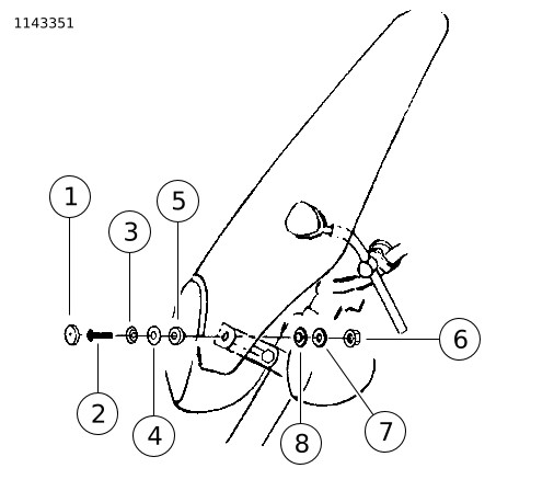 | 10. | Pasang dudukan bawah dengan urutan berikut (depan ke belakang): baut nilon (2), cincin cembung (3), cincin datar (4), busing karet (5), kaca depan, busing karet (8), cincin datar (7), braket sudut, mur whizlok (6). | |||||||||||||||||