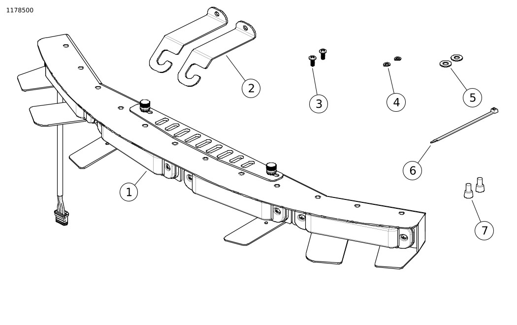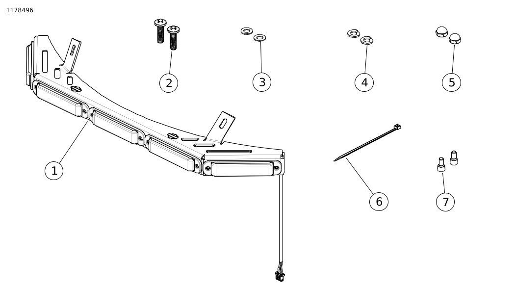 | 3. | Sakelar penghubung (P/N 71718-02) (7) ke kabel (6) lampu terang benderang (W). CATATAN Panjang semua kabel dapat bervariasi dari kendaraan ke kendaraan tergantung pada perutean kabel dan lokasi modul. | |