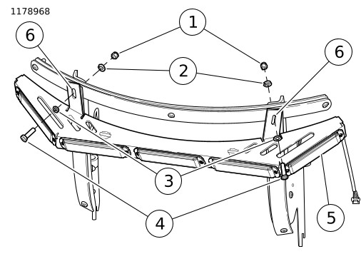 | 12. | Gambar 4 Kencangkan sekrup braket pemasangan (2) untuk menahan lampu ke kaca depan. |