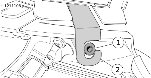 | 9. | Gambar 7 Pastikan braket pemasangan (2) terpasang sepenuhnya di sekitar insert berulir (1). |