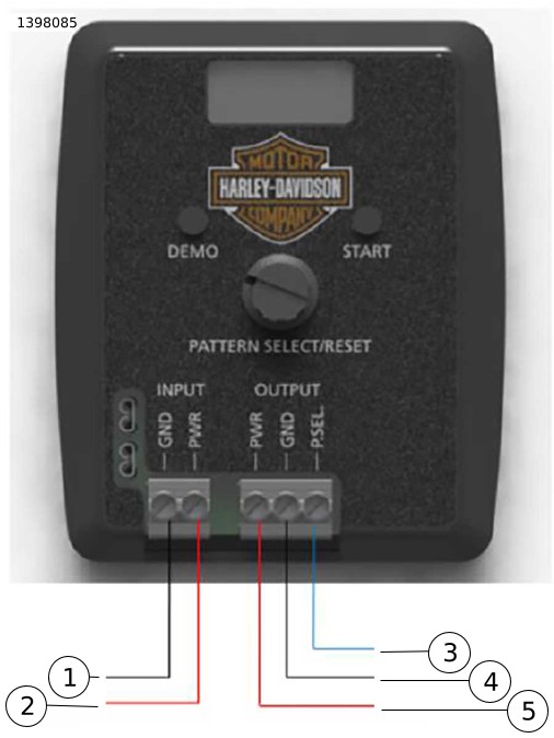 | 5. | Setelah pola yang diinginkan diprogram, lepaskan sambungan susunan lampu dari PSCP. a. Potong ujung kabel biru yang terbuka. b. Masukkan kabel biru dan hijau ke lampu. |