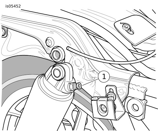 14. | מרח שתיים או שלוש טיפות של threadlocker על התבריגים החשופים של בורג ההרכבה התחתון של בולם הזעזועים.LOCTITE 243 MEDIUM STRENGTH THREADLOCKER AND SEALANT (חומר בדרגה בינונית לאטימה ולנעילת תבריגים; כחול) (99642-97) | |||||||||||||||
