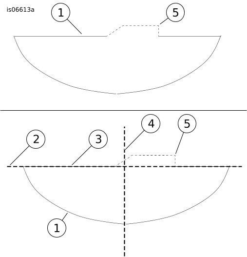 | 1. | Zobacz Rysunek 5 . Ustaw lewą stronę poziomej linii zarysu świateł mijania (3) z poziomą linią (2) narysowaną na ścianie. | |||||||||||