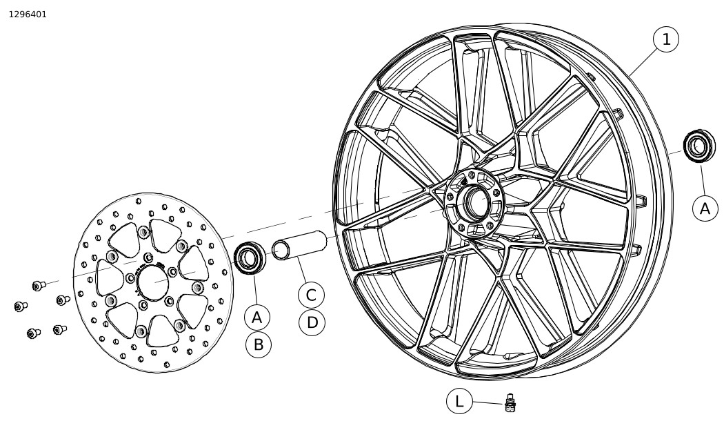 Kit pemasangan dirancang agar dapat berfungsi pada beragam gaya dan kesesuaian roda. Hubungi dealer Harley-Davidson untuk memastikan bahwa roda dan kit pemasangan dirancang dan disetujui untuk dipasang pada sepeda motor. CATATAN: * Lihat CATATAN di atas langkah pemasangan katup pada PEMASANGAN untuk menentukan batang katup yang tepat untuk digunakan dengan kit Anda. Sisihkan batang katup lainnya. ** Lihat CATATAN kit roda Anda di atas langkah perakitan roda pada PEMASANGAN untuk menentukan apakah bearing shim digunakan untuk kit roda Anda beserta kesesuaiannya. *** Shim bearing dipasang di bawah bearing utama. | A | Bearing, biasa (2) | 9276B | ||||||