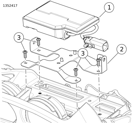 9. | הסר את שני הברגים המצמידים את יחידת בקרה טלמטית (TCU) לתושבת. שמור על הברגים כדי להשתמש בהם מאוחר יותר. | |