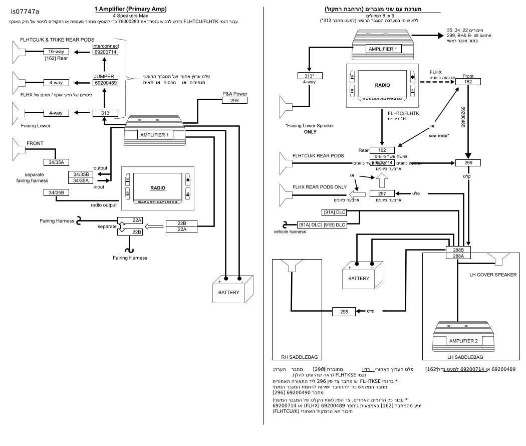 דגמי FLHX עם מערכת של ארבעה רמקולים: שדרוג למגבר ראשי | |