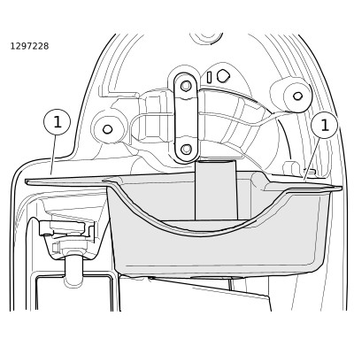 3. | Consultați Figura 3 . Scoateţi cele trei şuruburi ale compartimentului pentru mănuși. Scoateți ansamblul compartimentului de mănuși (2). | |||||||||||||||||||||||||||||||