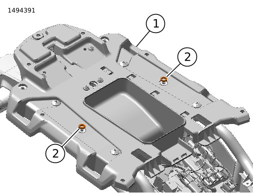 1. | איור 2 הסר את המושב האחורי לנוסע (1) ואת המושב (2). עיין במדריך הטיפולים. |