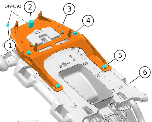 1. | איור 4 התקן את סוגר הנעילה של המושב (6). a. איור 6 התקן את בורגי סוגר הנעילה של המושב (3). הדק. מומנט סיבוב: 8–10 N·m (5.9–7.4 ft-lbs) בורגי סוגר הנעילה של המושב | |