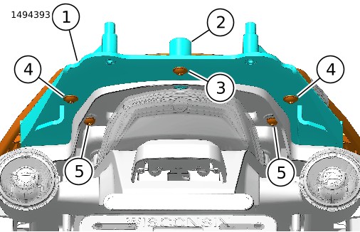 2. | איור 4 התקן את האור האחורי (3). a. איור 6 התקן את בורגי האור האחורי (2). הדק. מומנט סיבוב: 7–9 N·m (5.2–6.6 ft-lbs) בורגי האור האחורי b. חיבור מחבר האור האחורי (5) | |