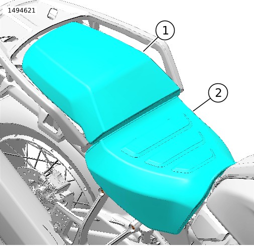 1. | איור 2 התקן את המושב (2) ואת המושב האחורי לנוסע (1). לאחר התקנת המושב, משוך אותו כלפי מעלה כדי לוודא שהוא מאובטח. עיין במדריך הטיפולים. |