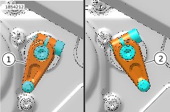 | 6. | כלי רכב עם רתמה למתג רגלית צד. a. הסר את האזיקון מהרתמה למתג רגלית הצד. b. איור 7 חבר את רתמת מעביר ההילוכים המהיר ואת רתמת רגלית הצד בצורה רופפת בעזרת אזיקון (3). c. חבר את רתמת מעביר ההילוכים המהיר ואת תושבת המסגרת של רגלית הצד בצורה רופפת בעזרת אזיקון (2). d. ודא שניתוב רתמת מעביר ההילוכים המהיר אינו בא במגע עם מגן המנוע התחתון, רגלית הצד ומסנן השמן. e. ודא שהעלאות/הורדות ההילוכים מתבצעות בטווח תנועה מלא ואינן מושכות את הרתמה. הערה בדוק אם נוצר מגע בין רגלית ההילוכים לבין הגוף של חיישן מעביר ההילוכים המהיר. f. הדק את שני האזיקונים (2, 3). | |