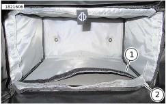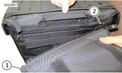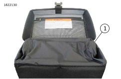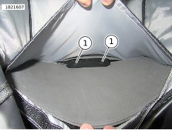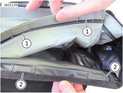 | 2. | איור 13 גלול את החלק העליון של התיק (1) והכנס אותו לתיק האוכף. |