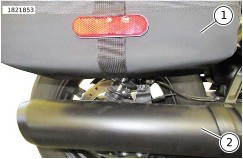 | 10. | ודא שמכלול תיק האוכף מהודק ומחובר היטב לרכב. a. איור 11 ודא שיש מרווח נאות בין תיק האוכף (1) לבין צינור המפלט (2). | |||||||||||||
