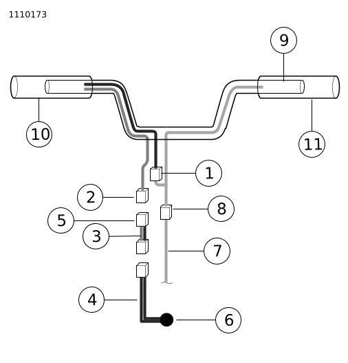 4. | חבר מגשר (3), 20 אינץ' בצבע אדום-שחור, מהערכה למחבר הזנת המתח/הארקה (2) של ידית הכידון השמאלית. הערה הערכה כוללת מגשרים אם יש צורך בהארכה נוספת לחוטים. | |