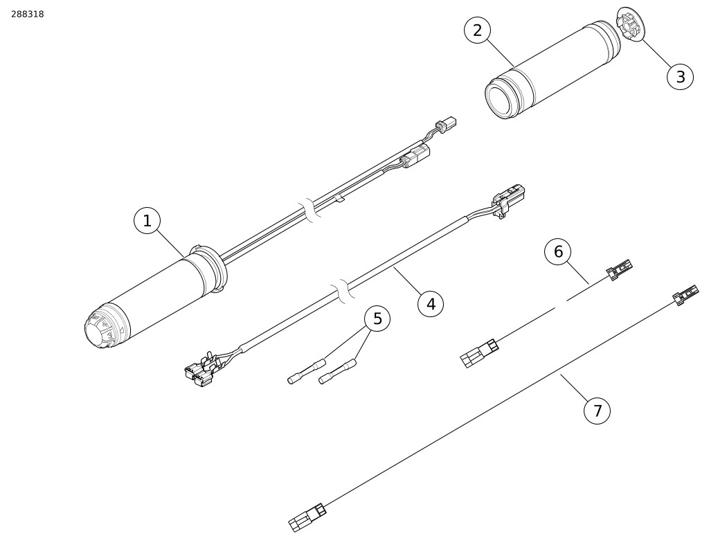 4. | איור 4 חבר את רתמת הקישור החדשה לחיווט של ה-TGS אל ה-TGS. a. חבר את המחבר (3) לרתמת החיווט של ה-TGS. b. חבר את המחבר (4) למחבר ידית הכידון המחוממת. |