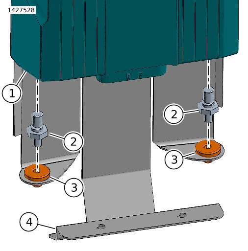 1. | Gambar 10 Arahkan harnes tas sadel eksternal di sepanjang rangka. Pasang harnes secara longgar ke titik jangkar dengan menggunakan pengikat kabel (1). Jangan kencangkan pengikat kabel. | |