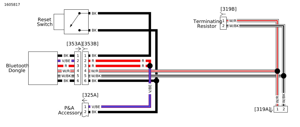 3. | Hanya untuk Model FLHXSE / FLTRXSE 2021 dan Setelahnya: a. Hubungkan harnes dongle [319B] ke kendaraan [319A]. b. Hubungkan harnes dongle [319B] ke tutup resistor pemutus. | |