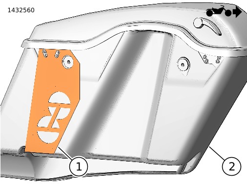 1. | איור 2 שים את שבלונת הקדיחה (1) על תיק האוכף השמאלי (2). a. השתמש בסרט הדבקה כדי לקבע את השבלונה במקומה. | |
