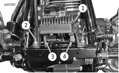 | 6. | 抬起电压调节器(1)以便将其从安装螺柱(2)上拆下。 | |||||||||||||||||||||