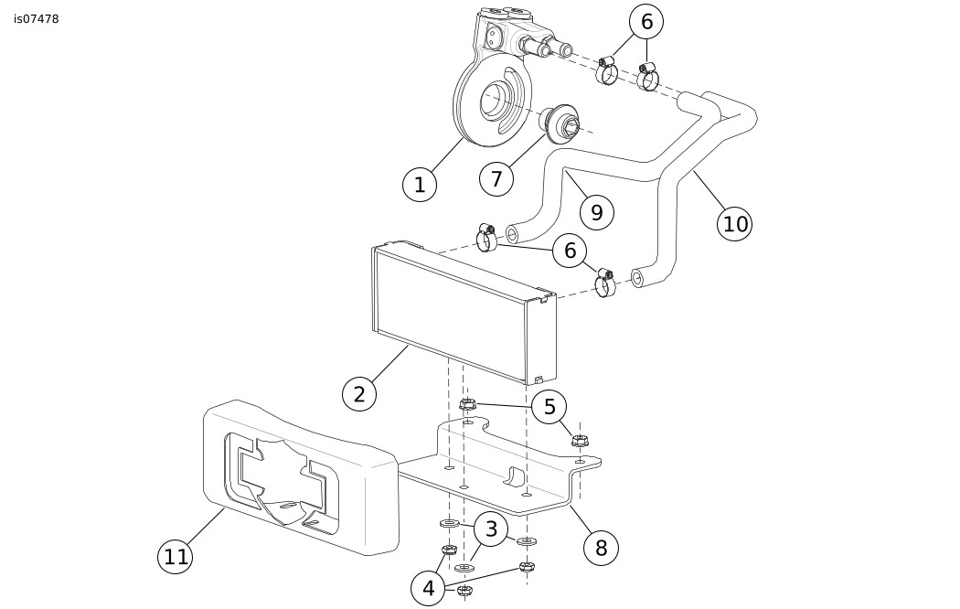 | 11. | 参见图5。 将两个夹具滑至左侧软管(10)和右侧软管(9),并将软管连接至机油冷却器(2)和机油滤清器适配器(1)。 | |||||||||||||||||||||