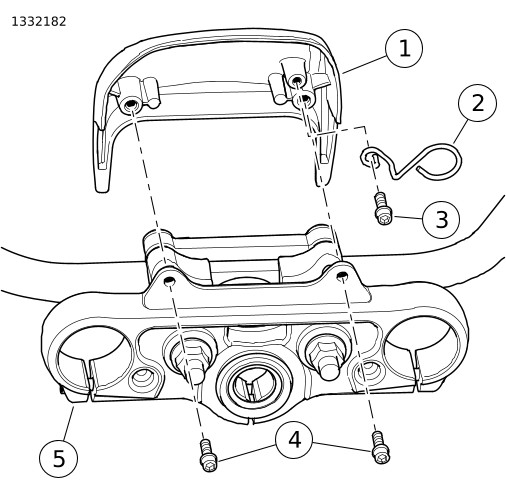 5. | Pasang sekrup (3). Kencangkan. Torque: 4–5,4 N·m (35–48 in-lbs) Sekrup penahan kabel kopling | |