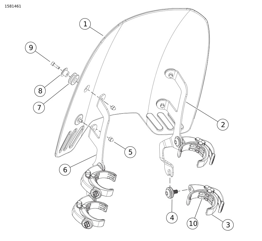 10 | Kit perangkat keras, dudukan kaca depan (4)(mencakup item 11 hingga 13) | 58790-04 | ||||