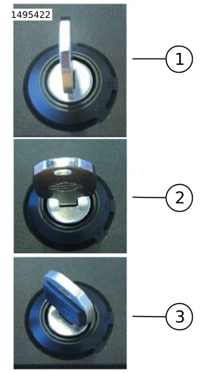 3. | Gambar 8 Pasang set kunci. a. Sejajarkan slot tumbler penahan (1) ke posisi pelepas (2). b. Tonjolan persegi di kunci harus sesuai dengan bukaan persegi di rotor (3). c. Tahan di tempat dengan tangan. | |