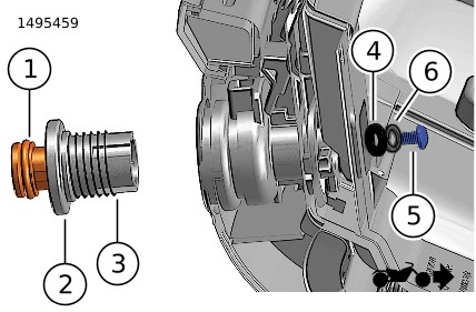 6. | Gambar 10 Pasang penutup (2) dan sekrup (1). Kencangkan dengan tangan. | |