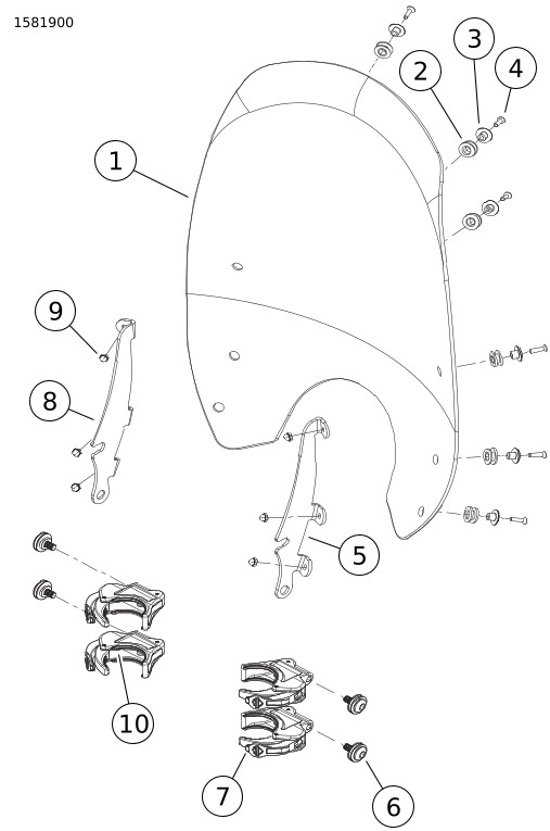Tarvikute vale paigaldamine või pagasi vale laadimine võib mõjutada mootorratta stabiilsust ja juhitavust, mis omakorda võib põhjustada surma või raskeid vigastusi. (00455b) Ebapiisav kliirens statsionaarsete ja liikuvate osade vahel võib tekitada juhitavuse kaotamise, mis võib põhjustada surma või raskeid vigastusi. (00378a) TEADE Ärge ületage paigalduskruvide paigaldamisel soovitatud pingutusmomenti. Muidu võib tuuleklaas kahjustada saada. (00385a) | ||||||||||||||