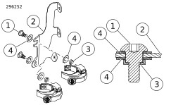 | 2. | Lihat Rajah 1 . Pasang pemasangan pengapit dengan longgar pada pendakap lekapan perisai angin (2). Ketatkan bolt bahu (1), sesendal Belleville (4) dan sesendal cawan (3) seperti yang ditunjukkan. |