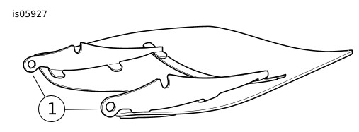 | 4. | Skavai (2) esot pavērstai uz augšu un uz vējstikla kronšteina (1) iekšu, pa vienai skavai pievelciet plecu skrūves (1) tiktāl, lai tās turētu skavas vējstikla virzienā, uzstādot vējstiklu uz motocikla. Skrūves tiks pilnībā pievilktas vēlāk. PIEZĪME Turiet priekšējo riteni taisni, lai izvairītos no degvielas tvertnes saskrāpēšanas ar kronšteiniem. | |||||||||||||