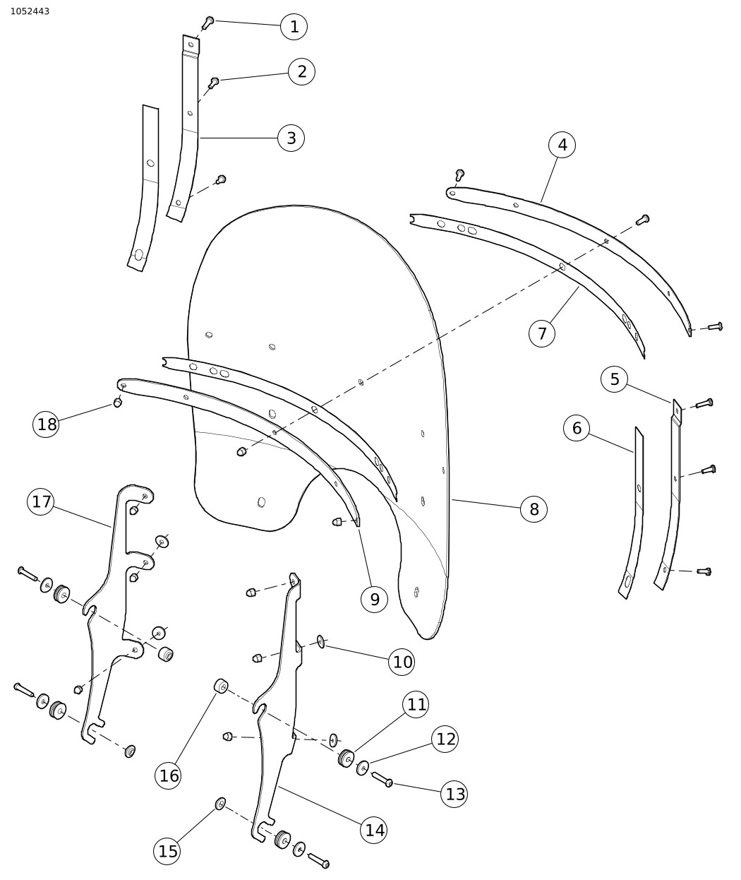 | 1. | הסר את מגן הרוח המקורי, אם קיים. השלך את מגן הרוח. הערה שמור גלגל קדמי ישר כדי למנוע את שריטת מיכל הדלק על ידי המסגרת. | |