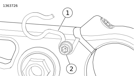 5. | הדק את הבורג (2). מומנט סיבוב: 4–5.5 N·m (35–49 in-lbs) בורג של סוגר של כבל המצמד |