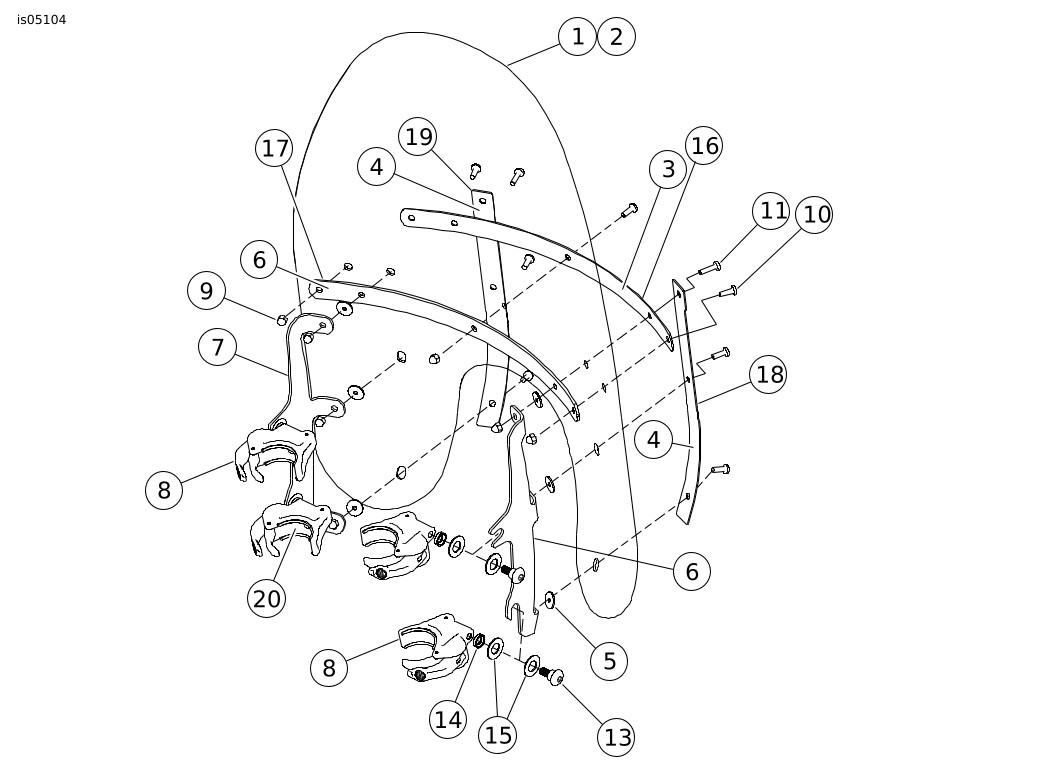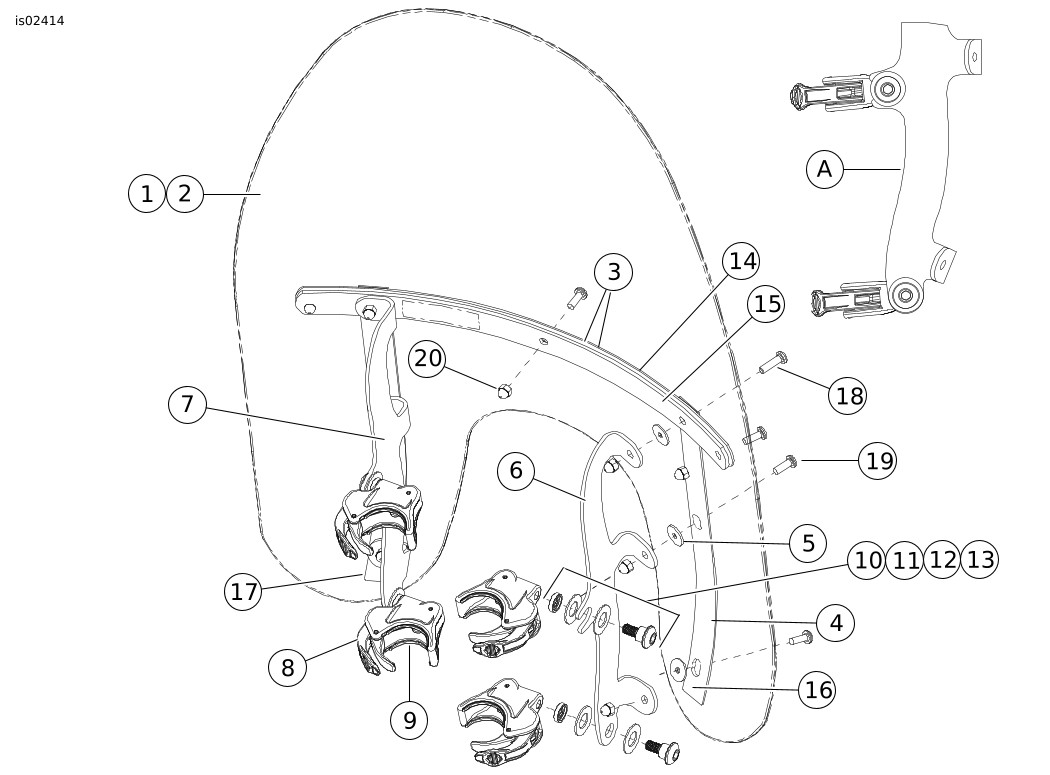 1 | ערכת שירות השמשה הקדמית, Super Sport (כוללת פריטים 2 עד 3) | 57302-06 | 8 | ערכת חומרה, כן שמשה (4) (כוללת פריטים 9 עד 11) | 58790-04 | |