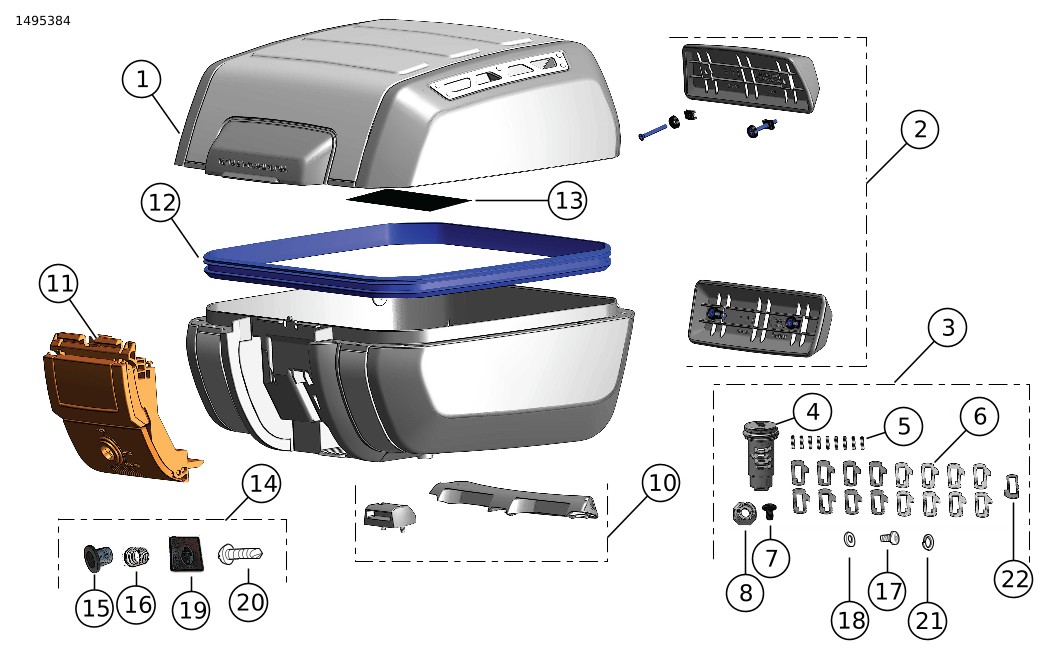 3 | 1 | מנעול, ללא מפתח (כולל את פריטים 4-9, 17, 18, 21) | 90300167 | ||