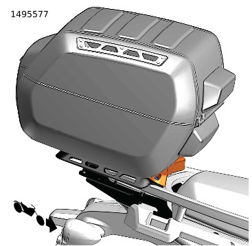 3. | ראה את איור 13 ואת איור 14 . החלק את הארגז העילי על סוגר הנעילה הקדמי (3), נדנד אותו כלפי מטה עד שהוא יינעל בנקישה בוו האחורי (4). |