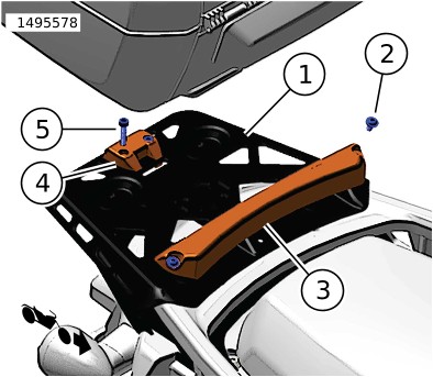 1. | איור 13 התקן את ערכת ההתקנה על תושבת ההתקנה. a. התקן את סוגר הנעילה (3) בעזרת שלושת הברגים (2) על הצד הקדמי של תושבת ההתקנה (1). הדק. מומנט סיבוב: 5.4–6.6 N·m (48–58 in-lbs) b. התקן את הוו (4) בעזרת הברגים (5) על הצד האחורי של תושבת ההתקנה (1). הדק. מומנט סיבוב: 5.4–6.6 N·m (48–58 in-lbs) | |