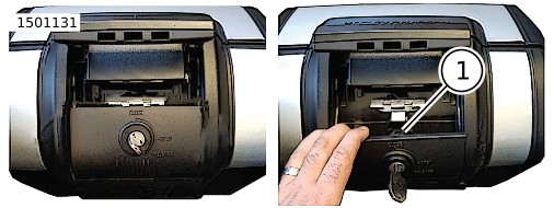 1. | איור 2 פתח את הארגז העילי ואתר את המנעול. a. משוך את הלשונית האדומה (1) כדי לשחרר את הידית (2). b. משוך את הידית (3) מתחת לידית כדי לפתוח את המכסה. | |